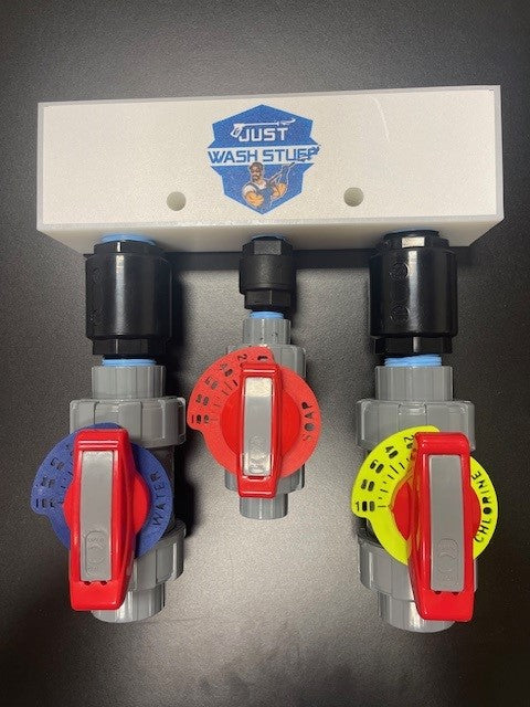 3 individual metering valves dedicated to water, chlorine, and soap
